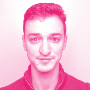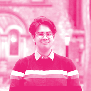 Avni Shah's headshot with a hot pink filter
